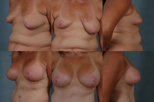 She is shown (bottom 3 views in each set) 4 months later with a nicely healed, beautifully aesthetic C cup outcome. A great triumph!
