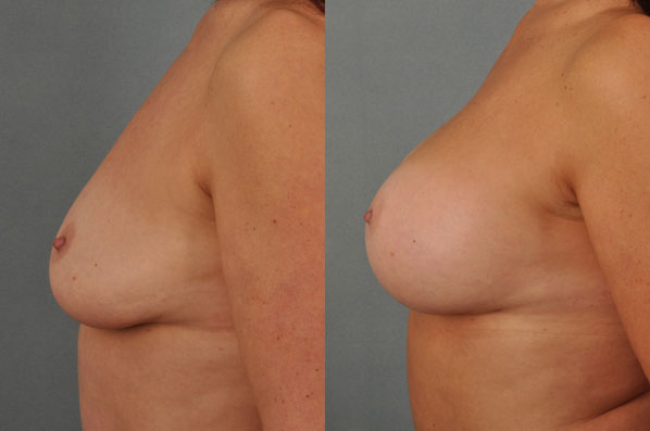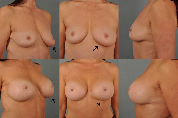This patient presented with an asymmetry of volume and asymmetry of the skin envelope. The sag has been taken up by an internal restructuring to allow for preferential fill centrally. A fine C/D cup outcome with silicone gel implants.