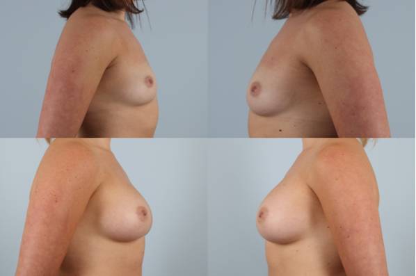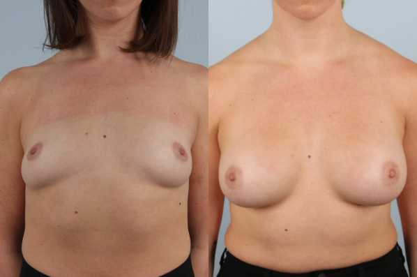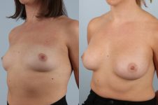 This shows a common problem women face. Extremely wide positioned breasts with extreme lateral nipple position. This is a very challenging aesthetic issue. Handled incorrectly would lead to enhancement of the problem. I internally performed a “differential” tissue release which allows the surface breast and nipple to rotate back to a nicer aesthetic position. A really great result!