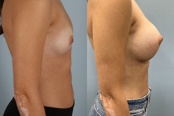 Constricted breast hypoplasia is when breasts are small and encapsulated tightly. This requires additional surgical expertise to treat this condition. Look at this beautiful transformation from AA to full C outcome using silicone gel implants placed under the muscle through an inframammary incision you can barely see! I specialize in breast augmentation and especially the management of complex construction breast anatomy.