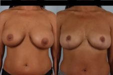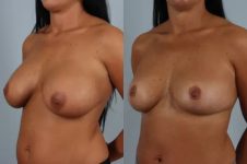 Many years after saline implant augmentation, pregnancy, and breastfeeding, this patient wanted and breast rejuvenation. I changed to smaller silicone gel implants and did a breast lift. Now she is back to a nice youthful breast appearance.