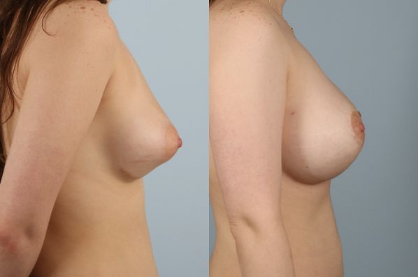 This patient presented unhappy with previous attempts at breast augmentation elsewhere by others. She had unresolved tuberous constricted breasts. I released the defect completely and reconfigured her breast with an internal bra sling of tissue graft. The results are beautiful! Schedule your consultation with Dr. Spiro today.