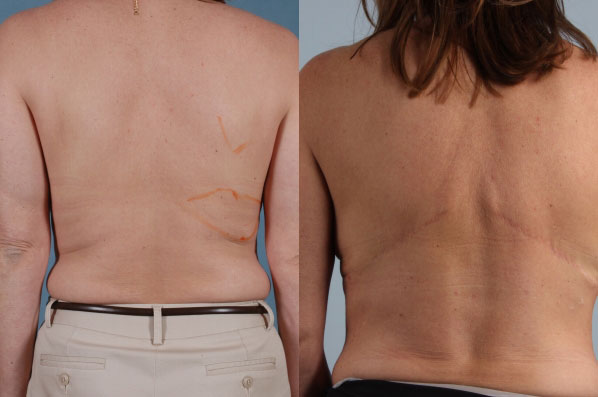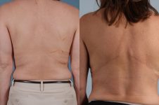 Shown prior to nipple reconstruction this patient underwent bilateral mastectomy (markings shown for mastectomy incisions dictated by mastectomy surgeon) and bilateral latissimus flap with implant reconstruction. A natural and soft reconstruction.