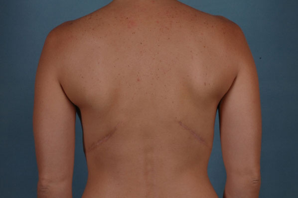 Breast cancer affects the youngest of women. This woman was in her 20’s when diagnosed. Determined to beat cancer and preserve her body she elected to do bilateral mastectomies and bilateral latissimus flap with implants (from the back) to rebuild her breast.