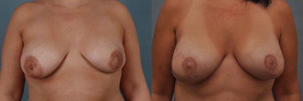 This young woman presented with breast cancer and a plan to undergo bilateral reconstruction with latissimus flap and implants. She is shown after reconstruction is complete. Remember the potential severe disfigurement of mastectomy? A beautiful lifted, soft, cosmetic outcome that fully camouflages the mastectomy.