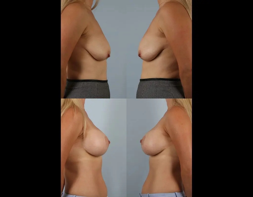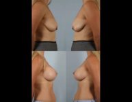This is just about as remarkable a transformation as possible from a well designed, planned and executed breast lift with implant augmentation. This amazing result can only be achieved with the combination of lift, reduction and augmentation. The reduction component which so many surgeons fail to appreciate, eliminate the saggiest tissue, clearing the way for the remaining breast to be wrapped around the properly sized and fitted implant.