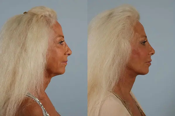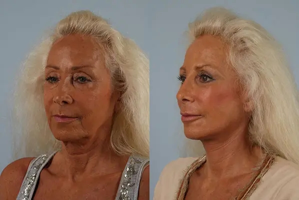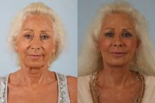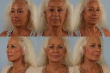 Combination SMAS Composite face lift, neck lift, platysmaplasty, cervicoplasty and fat grafting to multiple sites of the face including lid cheek junction, lips, jaw line, marionette folds, along with upper and lower lid blepharoplasty with lateral cheek lift and fat transposition. A terrific transformation and beautiful, youthful, natural result!