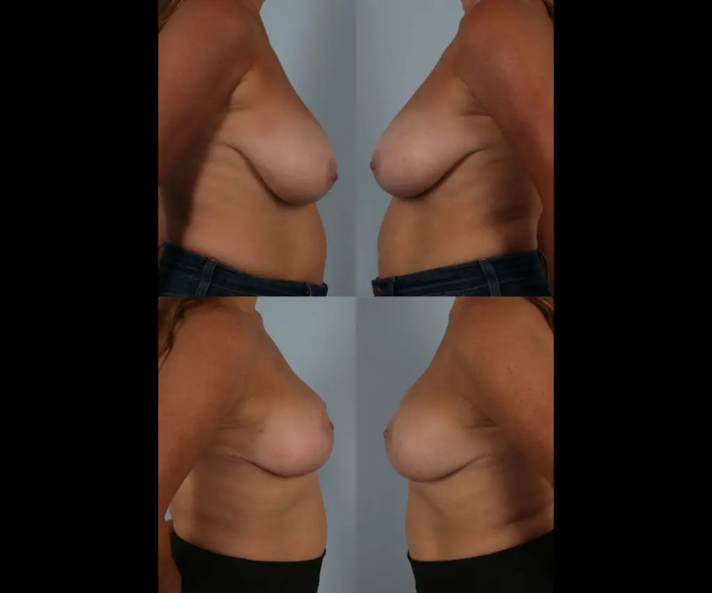 DDD cup breast with sag have been magically transformed into a very nice C cup outcome with combination lift, excisional reduction, and perimeter shaping liposuction. A beautiful result!
