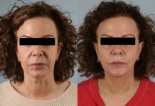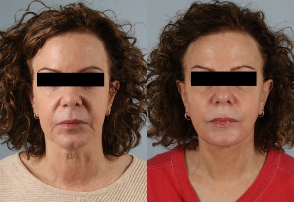 This patient presented with the challenges of dramatic neck laxity and jowling with laxity of deep tissues (SMAS and platysma). Additionally, I used my combination bilaminar (separating and treating skin and deep tissues distinctly SMAS Platysma Composite (in unison) elevation and tightening of neck platysma centrally laterally as well as facial SMAS and its superior fibrofatty extension with multivector repositioning to yield long lasting significant (yet natural appearing) improvements to the face. A great representative result of my version of a deeper plane face lift.
