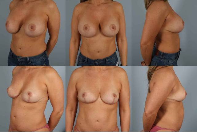 This patient presented with concerns about her health possibly related to her breast implants. I did an “enbloc” total capsulectomy/removal of implants and autoaugmentation breast lift preserving her remaining breast tissue.